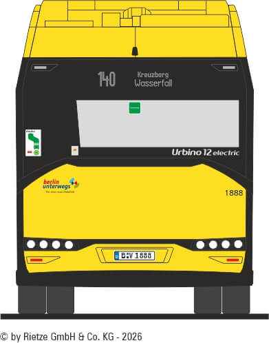 Solaris Urbino 12 '19 electric 2-türig BVG, Linie 140, Wagen 1888, gelb